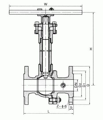 主要连接尺寸参数 2.5Mpa 产品型号 | 公称通径 DN | PN2.5MPa | WT (kg) | | L | D | D1 | D2 | b | Z-Φd | H | W | DQ41F-25 DQ41F-25P DQ641F-25 DQ641F-25P DQ941F-25 DQ941F-25P | 15 | 140 | 95 | 65 | 45 | 16 | 4-Φ14 | 178 | 140 | 3 | | 20 | 152 | 105 | 75 | 55 | 16 | 4-Φ14 | 184 | 160 | 4 | | 25 | 165 | 115 | 85 | 65 | 16 | 4-Φ14 | 195 | 180 | 6 | | 32 | 178 | 135 | 100 | 78 | 18 | 4-Φ18 | 280 | 250 | 10 | | 40 | 190 | 145 | 110 | 85 | 18 | 4-Φ18 | 280 | 300 | 14 | | 50 | 216 | 160 | 125 | 100 | 20 | 4-Φ18 | 300 | 350 | 20 | | 65 | 241 | 180 | 145 | 120 | 22 | 8-Φ18 | 330 | 350 | 25 | | 80 | 283 | 195 | 160 | 135 | 22 | 8-Φ18 | 360 | 400 | 30 | | 100 | 305 | 230 | 190 | 160 | 24 | 8-Φ23 | 400 | 500 | 40 | | 125 | 381 | 270 | 220 | 188 | 28 | 8-Φ25 | 430 | 600 | 65 | | 150 | 403 | 300 | 250 | 218 | 30 | 8-Φ25 | 500 | 800 | 85 | | 200 | 502 | 360 | 310 | 278 | 34 | 12-Φ25 | 680 | 800 | 100 | | 250 | 568 | 425 | 370 | 332 | 36 | 12-Φ30 | 790 | 1300 | 165 |