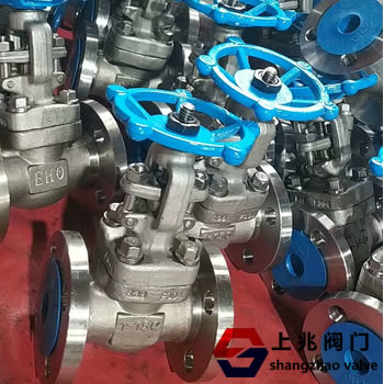 整体锻钢法兰闸阀是上兆阀门自主研发生产的一种法兰和阀体为整体锻压出来的阀门,打破传统锻钢阀门的阀体和法兰需要螺纹连接再焊接的工艺。整体锻钢阀门比分体式的阀门锻压工艺上繁琐,安全性能可靠。 上兆整体锻钢法兰闸阀由阀体、阀盖、闸板、手轮等重要部件组成。闸阀的启闭件是闸板,闸板的运动方向与流体方向相垂直,闸阀只能作全开和全关,不适合作调节和节流。闸板有两个密封面,最常用的楔式闸板阀的两个密封面形成楔形,楔形角随阀门参数而异,通常为5°。通常在升降杆上有梯形螺纹,通过阀门顶端的螺母以及阀体上的导槽,将旋转运动变为直线运动,也就是将操作转矩变为操作推力。有的阀门,阀杆螺母设在闸板上,手轮转动带动阀杆转动,而使闸板提升,这种阀门叫做旋转杆闸阀或叫暗杆闸阀。 整体锻钢法兰闸阀 --材质说明: | 阀体 | WCB | WC1 | WC6 | WC9 | ZGCr5Mo | CF8 | CF8M ZGCr18Ni9Ti | CF3 | CF3M | | 阀盖 | WCB | 12Cr1MoV WC1 | 12Cr1MoV WC6 | 12Cr1MoV WC9 | 12Cr1MoV ZGCr5Mo | 304 CF8 | 316 CF8M | CF3 | CF3M | | 支架 | WCB | WCB | WCB | WCB | WCB | CF8 | CF8M | CF3 | CF3M | | 闸板 | WCB | WC1 | WC6 | WC9 | ZGCr5Mo | CF8 | CF8M | CF3 | CF3M | | 阀杆 | 2Cr13 | 25Cr2MoV | | 阀座 | 25 | 304 | 304 | 304 | 304 | 304 | 304 | 304 | 304 | | 密封环 | 包覆垫、增强柔性石墨 | | 填料 | 增强柔性石墨 | | 阀杆螺母 | ZCuA110Fe3 |