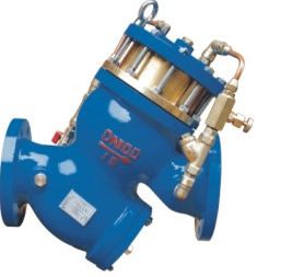 200X-16-100减压稳压阀由主阀,先导阀,针阀,球阀,微过滤器和压力表组成,形成液压控制接管系统。使用时,当设定出口压力时,可以自动保持稳定的出口压力。本产品采用自支撑先导阀,不需要其他设备和能源,维护方便,压力控制精度高,受入口压力和流量影响小,减压和电压调节可靠。广泛用于高层建筑,生活区等供水管网系统和城市供水工程。 当阀门从入口端供水时,水流过针阀进入主阀控制室,出口压力通过导管流向导阀。当出口压力高于先导弹簧设定值时,先导阀关闭??刂剖彝V古潘?,此时主阀控制腔室压力上升并关闭主阀,出口压力不再上升。 当阀门出口压力下降到先导阀设定压力时,先导阀打开,控制室向下游排放。由于先导阀系统的位移大于针阀的进水口,因此主阀控制室中的压力下降。入口压力打开主阀。在稳定状态下,控制室有相同的排水和排水,主阀开度不变,出口压力稳定。可以通过调节先导弹簧来设定出口压力。 三,200X-16-100 减压稳压阀 - 主要技术参数: