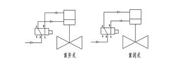 四,0QDQ421F-16C-200电磁动紧急切断阀-工作原理和结构说明: 1.单作用工作原理:当阀门在没有外部压力的情况下运行时,阀瓣处于常闭状态。当在管道或罐系统上使用时,阀门通过电源和气源的压力打开。当使用下阀时,当需要关闭阀门时,可以排出动力或供气压力,并且阀门自动关闭。 2.当阀瓣关闭时,通过打开减压阀来实现压力。 3,??涂梢缘ヒ欢骰蚨ㄖ?。 4.双作用工作原理:当控制器按照预编程序向电磁换向阀输出电信号时,电磁换向阀通过切换电磁换向,使加压仪表的压力源进入。阀。气动执行机构的下腔向上推动活塞,活塞驱动阀杆,阀杆抬起阀芯打开阀门,切断换向阀的电信号,使活塞向后移动关闭阀门。该阀门配置称为“关闭”。相反,为了使???,只能改变电磁换向阀和气动执行器的连接方式(见下图)。 |