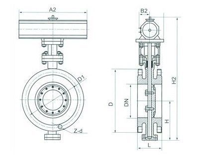气动煤气紧急切断阀--性能特点: KD642X煤气气动紧急切断阀:气动切断快,密封性能好,无泄漏 公称压力:0.60MPa 强度试验压力:0.9MPa 密封试验压力:0.66MPa 适用温度:≤200℃ 适用介质:加热炉煤气、高炉煤气、转炉煤气等 阀体部分(煤气专用蝶阀)阀杆采用镀铬处理,填料为高温石墨,并且在上下轴之间经过特殊工艺处理,装配防锈死装置。经过这些特殊工艺之后阀门具备耐腐蚀、抗焦油、还具备有限防止烟尘进入轴承内,从而保证阀门开关灵活不卡死,在管道中起到截断介质的作用。 KD642X-6C气动煤气紧急切断阀 --工作原理: KD642X煤气气动紧急切断阀上的有单作用(双作用)气动装置,由单作用(双作用)气缸.活塞.连杆.箱体输出轴等零件组成的机械传动机构和电磁阀.过滤减压阀等控制元件组成。当气动执行装置与电路和系统气源接通后,电磁阀接收到24V电压信号转换成输出气压力,使压缩空气进入缸体一端,推动活塞向另一端移动,活塞通过连杆等零件带动输出轴运转实现阀门快速启闭。同时回讯器根据阀门的启闭位置来反馈输出的控制信号正确定位。 KD642X煤气气动紧急切断阀--执行标准: 1、设计制造:GB12238; 2、法兰连接尺寸;GB9115; 3、检验和试验:GB/T13927 气动煤气紧急切断阀--主要连接及外形尺寸: