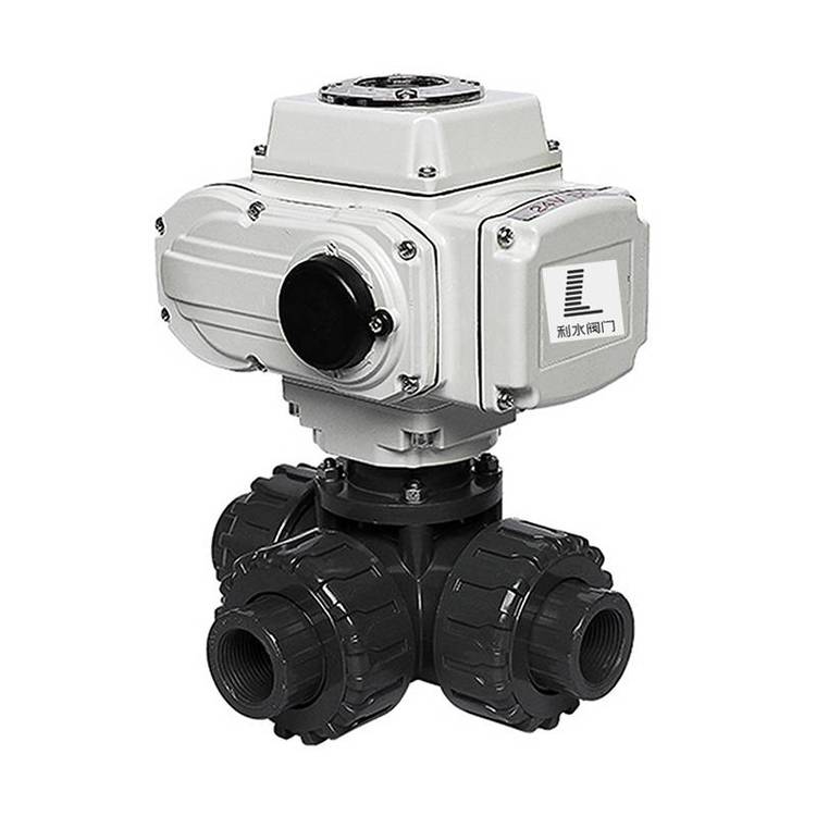 Q924F电动UPVC塑料三通球阀Q925F电动UPVC三通球阀/Q925F电动UPVC三通T型球阀/Q924F电动UPVC三通L型球阀/电动UPVC双由令三通球阀/电动硬聚氯乙烯三通球阀/电动UPVC活接三通球阀/电动UPVC承插三通球阀/电动UPVC内螺纹三通球阀/电动塑料三通球阀采用双由令承插或者内螺纹连接,不须使用特殊工具即可快速装配,具有结构紧凑、耐磨损、容易拆卸、方便检修、维护简单易行等优点。UPVC电动三通球阀可为L形和T形,L形Q924F用于介质流向的切换,能使相互垂直的两个通道连接;T形Q925F用于介质分流、合流及流向切换, 紧急切断阀T形三通可以使三个通道相互连通或使其中的两个通道连通。UPVC电动三通球阀阀体材质卫生无毒、耐腐蚀性强、重量轻、应用范围广,例如:纯水和生饮水的管路系统、排水和污水管路系统、盐水和海水管路系统、酸碱和化学溶液系统等多个行业。