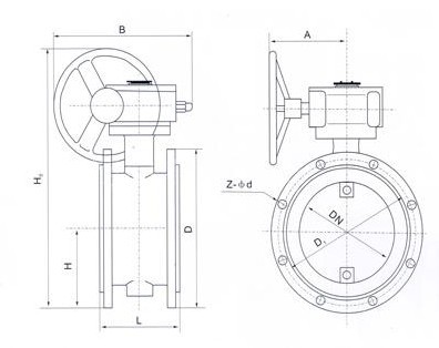 D341W蜗轮法兰通风蝶阀通过驱动装置带动阀轴、经转动销使蝶板随阀轴一起作90℃范围内旋转,从而达到开头或调节目的。