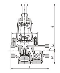 200P水用减压阀属于先导活塞式减压阀。由主阀和导阀两部分组成。主阀主要由阀座、主阀盘、活塞、缸套、弹簧等零件组成。导阀主要由阀座、阀瓣、膜片、弹簧、调节弹簧等零件组成。通过调节调节弹簧压力设定出口压力,利用膜片传感出口压力变化,通过导阀启闭驱动活塞调节主阀节流部位过流面积的大小,实现减压稳压功能。水用减压阀主要用于蒸汽管路,起减压稳压作用。