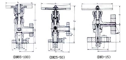 J44H 高压角式截止阀属于强制密封式阀门,所以在阀门关闭时,必须向阀瓣施加压力,以强制密封面不泄漏。当介质由阀瓣下方进入阀六时,操作力所需要克服的阻力,是阀杆和填料的磨擦力与由介质的压力所产生的推力,关阀门的力比开阀门的力大,所以阀杆的直径要大,否则会发生阀杆顶弯的故障。近年来,从自密封的阀门出现后,截止阀的介质流向就改由阀瓣上方进入阀腔,这时在介质压力作用下,关阀门的力小,而开阀门的力大,阀杆的直径可以相应地减少。同时,在介质作用下,这种形式的阀门也较严密。我国阀门“三化给”曾规定,截止阀的流向,一律采用自上而下。