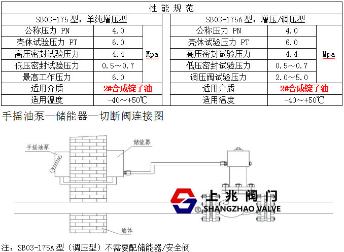 SB03-175 站用手摇油泵与紧急切断阀配套使用,适用于液化石油气储配站的大型贮罐或槽车上供紧急切断阀在工作状态,打开时的压力油源,利用此泵的性能来达到控制紧急切断阀打开或关闭的目的。