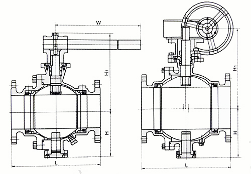 产品介绍 一、Q347F 蜗轮固定式法兰球阀--概述: Q347蜗轮固定式法兰球阀,球体带有固定轴的球阀,称为固定球阀。固定球阀主要用于高压大口径。根据阀座密封圈的安装不同,固定球阀可以有两种结构:球体前密封的阀座,球体后密封的阀座Q347H、Q347F硬密封固定球阀广泛用于石油、天然气、煤炭和矿石的开采、提炼加工和管道输送系统中;化工产品、医药和食品生产中;水电、火电和核电的电力生产系统中;城市和工业企业的给排水、供热和供气系统中。 二、Q347F 蜗轮固定式法兰球阀--结构简图: