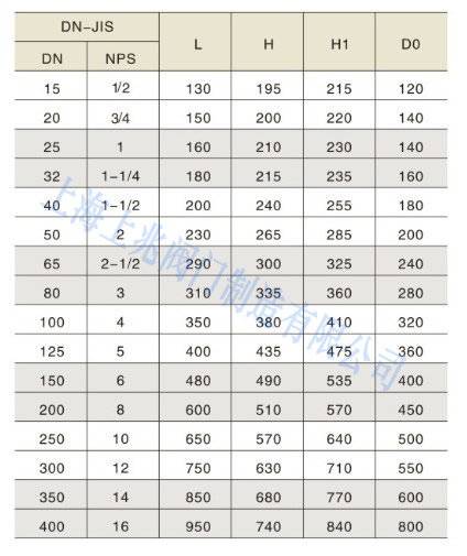 注:≥DN50的技术参数同上,开启高度按阀门公称通径的%35±5计算