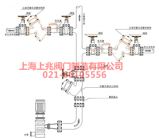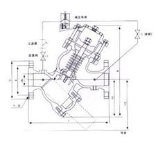 产品介绍 一、YQ98001型过滤活塞式可调减压阀--原理: YQ98001型过滤活塞式可调减压阀由比托管传递压差信号给流导阀, 限流阀和针阀执行两路控控制. 来控制主阀活塞上腔的压力. 通过限流导阀调节摞栓的调节. 使阀后流量达到设定值; 活塞下腔有节流孔与下游相通. 可绶冲阀门的关闭, 主阀两端压力差是阀门启. 闭的驱动能源。主要用于空调. 给排水. 消防和各类工矿企业等供水管网口需要过滤而且对流量实现控制的场所和工况。能将上游压力降低至所设置的下游压力,无论怎样改变上游的压力和流量,其预先设定的下游压力均能够保持不变。 产品外观图