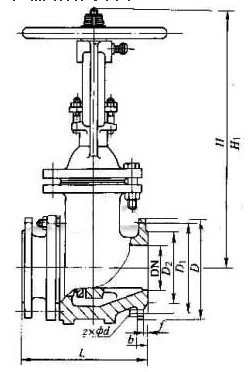 PZ41H-10 型手动耐磨排渣闸阀主要外形及结构尺寸(mm) | DN | L | D | D1 | D2 | b | z×Φd | f | H | H1 | 重量/kg |
